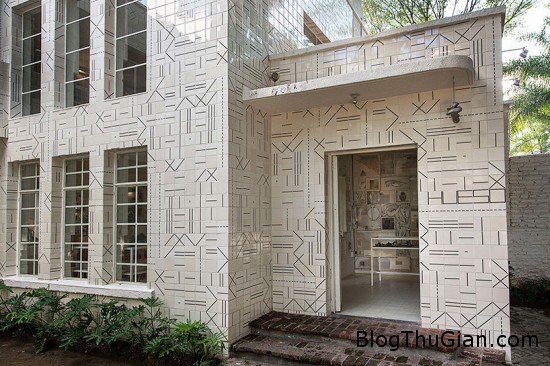 Bên ngoài của tòa nhà được xây dựng từ những năm 1940 đã được cải tạo lại bằng gốm thủ công với những hình khối zigzag giống như những đường may.