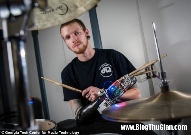 Nhờ cánh tay máy, anh có thể đánh trống bằng cách di chuyển khuỷu tay lên và xuống, nhưng chưa thể kiểm soát tốc độ của những cú gõ.