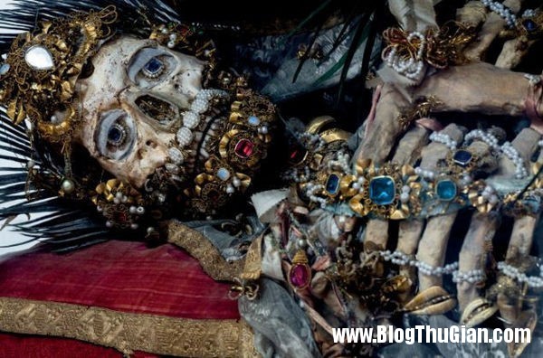 Mỗi bộ hài cốt được trang trí tỉ mỉ bằng vàng, bạc và đá quý, ước tính trị giá hàng ngàn bảng Anh. Có những bộ hài cốt người ta mất tới 5 năm để trang trí.