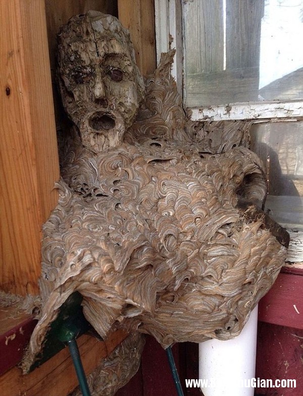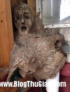 Được biết, sở dĩ tổ ong có hình mặt người là do nó đã bị kết dính vào bức tượng gỗ hình đầu người. Nhưng thoạt nhìn qua, hình ảnh tổ ong với khuôn mặt người “mếu máo” như vậy cũng quả là một cơn ác mộng đối với nhiều người.