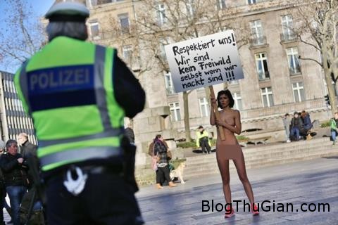 Nữ nghệ sĩ Thuỵ Sĩ khoả thân phản đối hãm hiếp tại Cologne, Đức ngày 8/1