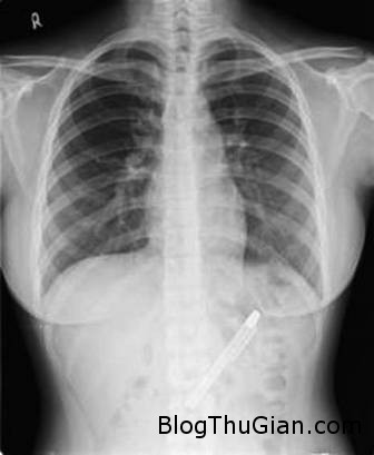 Ảnh chụp X-quang cho thấy chiếc bút trong bụng bệnh nhân.