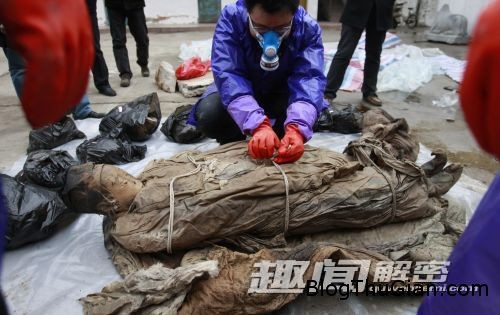 Khi thi thể được đưa ra ngoài, các chuyên viên quan sát nhận định, bên trong quan tài là thảo dược đông y, chất lỏng là hỗn hợp vi sinh vật và oxy. Quan tài được phong kín hoàn hảo, qua thời gian, hỗn hợp này dần thẩm thấu vào thi thể, bảo quản, chống thối rữa.