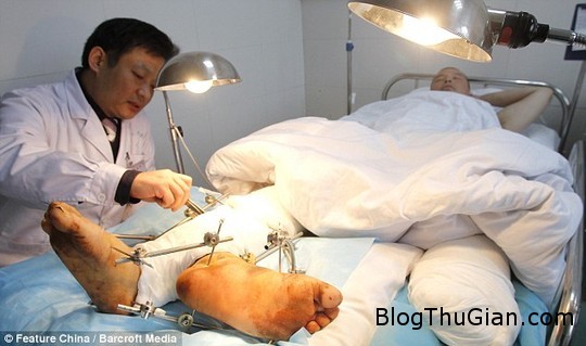 Daily Mail ngày 6-8 đưa tin bệnh nhân họ Ma được phẫu thuật cắt chân trái do tai nạn lao động tại Bệnh viện Trịnh Châu, Trung Quốc.