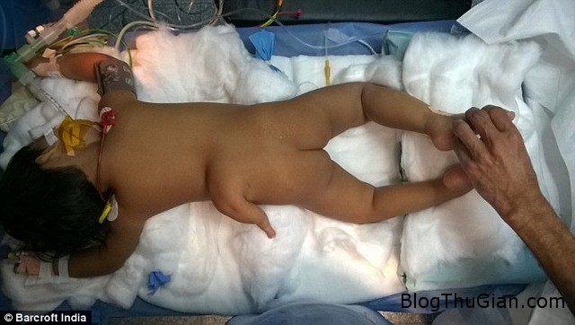 Bé gái người Ấn Độ với chiếc chân mọc ở lưng đã được phẫu thuật thành công. Đây là một ca hiếm gặp trong y văn thế giới với tỉ lệ 1/1 triệu ca.