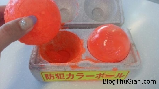 Người Nhật gọi những quả bóng này là Bohan yu kara Boru, liên tưởng đến màu da cam của chúng. Khi gặp một kẻ trộm, nhân viên cửa hàng sẽ ném quả bóng này vào người thủ phạm. Khi bị ném trúng, quả bóng sẽ nổ, màu cam sẽ bắn ra làm dấu hiệu trên người kẻ trộm để cảnh sát truy tìm dễ hơn.
