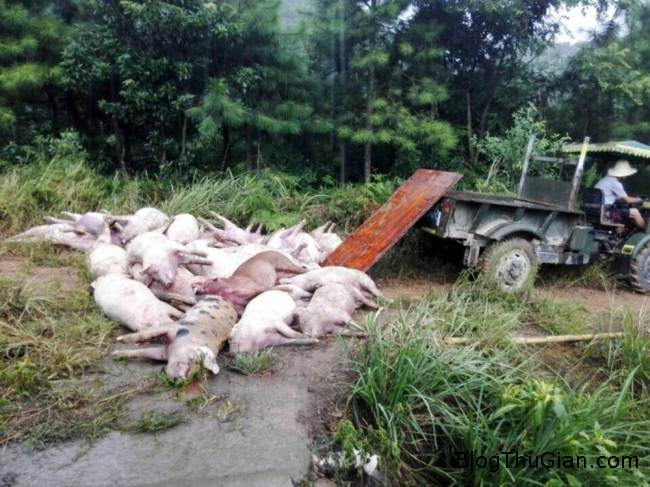 Những con lợn chết la liệt sau khi bị sét đánh.