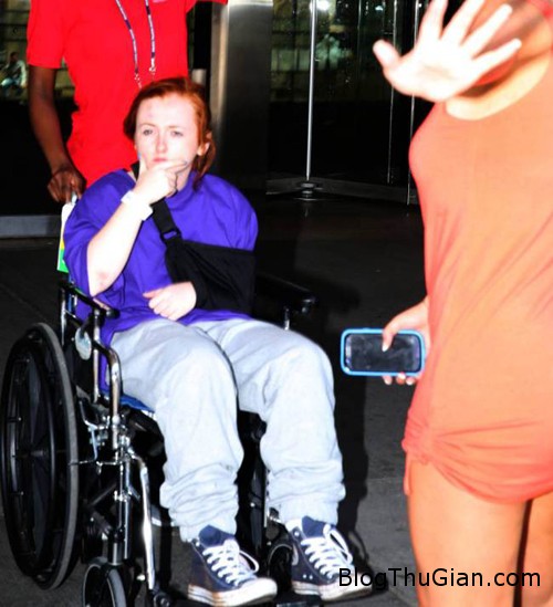Mary rời viện với một bên vai trái bị thương. Ảnh: Splash