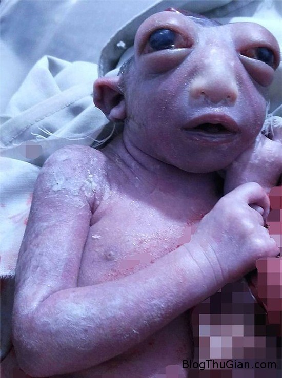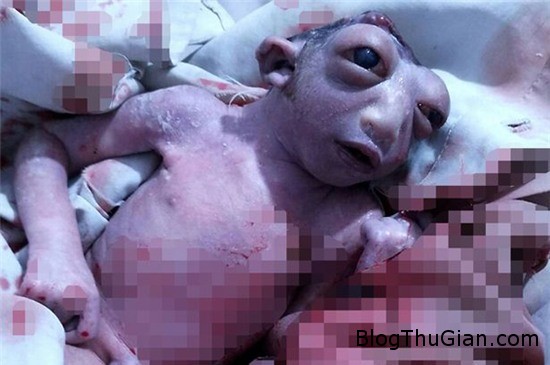 Em bé sinh ra với đôi mắt to, lồi và chỉ có nửa đầu do não chưa hình thành hoàn chỉnh.
