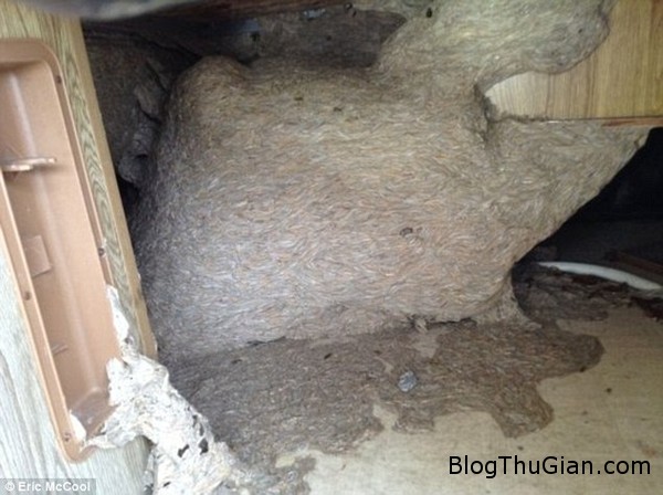 Ông Eric McCool, Giám đốc công ty Dịch vụ McCool cho biết ước tính tổ ong này có kích thước dài 3m, rộng 2m, cao 0,6m và có thể chứa tới 350.000 con ong bắp cày.