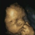 Thích thú với hình ảnh bé trai nằm suy tư trong bụng mẹ