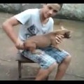 Người đàn ông này đang làm hành động gì với trái mít thế