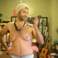 Người đàn ông khỏa thân và đi giày cao gót khi tập thể dục