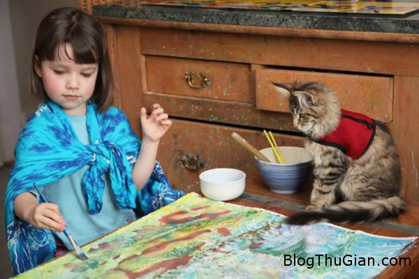 Bé Iris Grace đặc biệt thích thú với những cây cọ vẽ tranh và những hộp màu. Ảnh: Metro