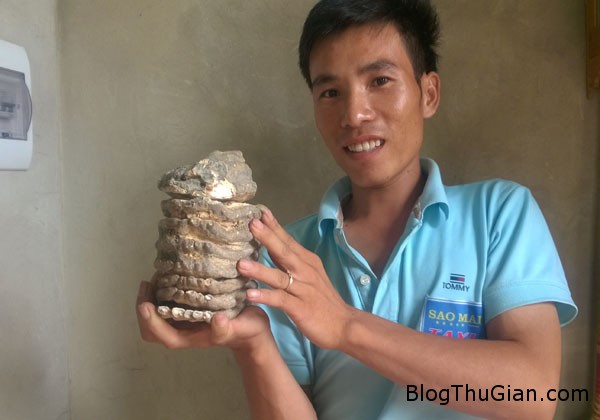 “Tôi thấy vật lạ nên mang về bỏ vào tủ trưng bày, về sau lên mạng đọc báo mới thấy giống y chang hàm răng hóa thạch của voi ma mút”, Quang kể.