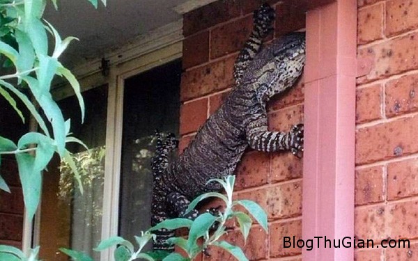 Cụ ông 80 tuổi sống tại ngoại ô thành phố Albury, Úc cho biết, trong lúc đang làm việc ở nhà kho sau vườn, cụ bỗng nghe thấy một tiếng đập mạnh. Khi ngừng tay để đi lên nhà kiểm tra thì cụ Eric đã thấy con kỳ nhông khổng lồ chễm chệ trên tường.