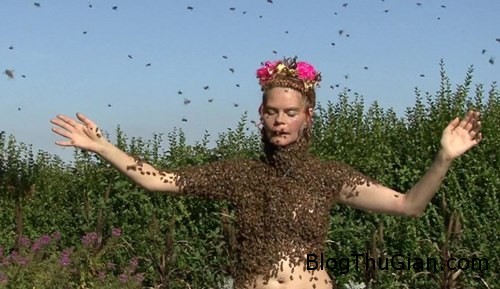 Thư giãn bằng cách nude để 12.000 con ong đậu khắp người