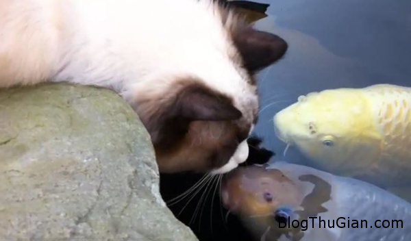 Theo người dân ở đây, trong suốt ba năm qua, ngày nào mèo cũng ra hồ nước để được gặp cá và “hôn” cá. Mỗi khi mèo dùng chân trước nhẹ nhàng vỗ vào mặt nước, những con cá lại nhô đầu lên khỏi mặt nước và đôi bên trao nhau nụ hôn.