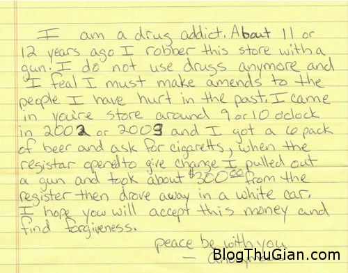 12 năm sau khi ăn trộm 400 USD của cửa hàng, tên trộm bất ngờ quay lại để trả số tiền và viết thư xin tha thứ.