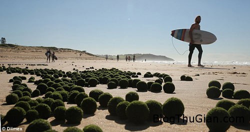 Hàng ngàn “quả bóng màu xanh” được người dân gọi là trứng người ngoài hành tinh trôi dạt vào bờ.
