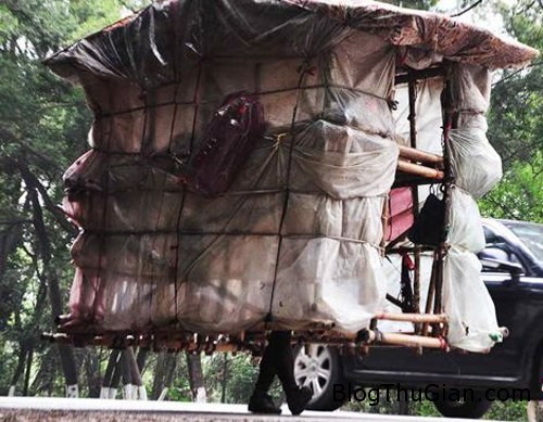 Do 60kg khong phải là khối lượng dễ dàng cho một người có thể bê vác, vì thế anh Liu hiện ngày ngày chỉ di chuyển với tốc độ rất chậm chạp. Anh Liu rời khỏi thành phố Lữ Châu cách đây mấy tháng và hiện hoàn thành nốt đoạn đường dài hơn 430km về Rong’an.