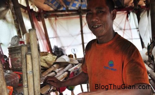 Anh Liu và “nội thất” bên trong căn nhà. Ảnh: China News