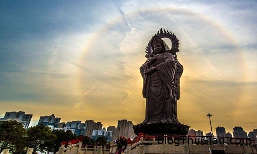 Vầng hào quang kỳ lạ tỏa sáng quanh tượng Phật ở Trung Quốc