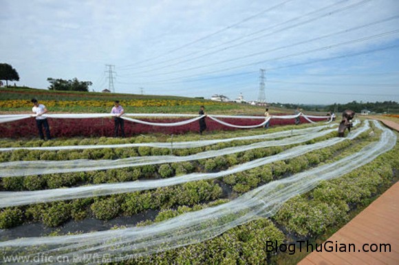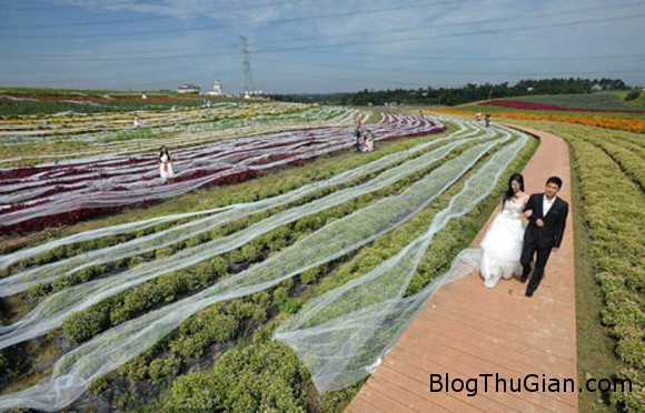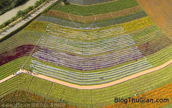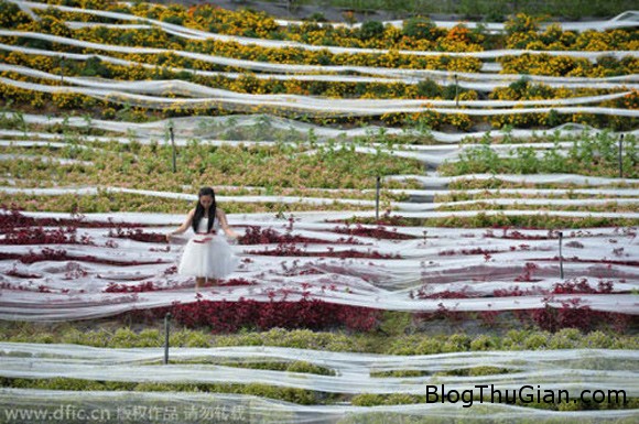Đuôi váy được trải dài trên cánh đồng hoa ở Thành Đô, tỉnh Tứ Xuyên.
