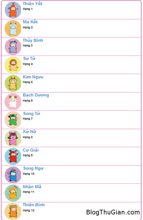 Xếp hạng độ vô tình vô nghĩa của 12 chòm sao