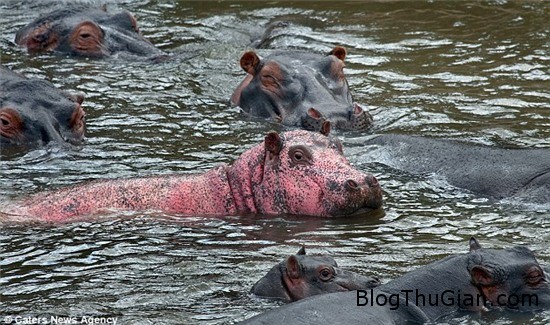 Con hà mã hồng đặc biệt nổi bật giữa cả đàn.