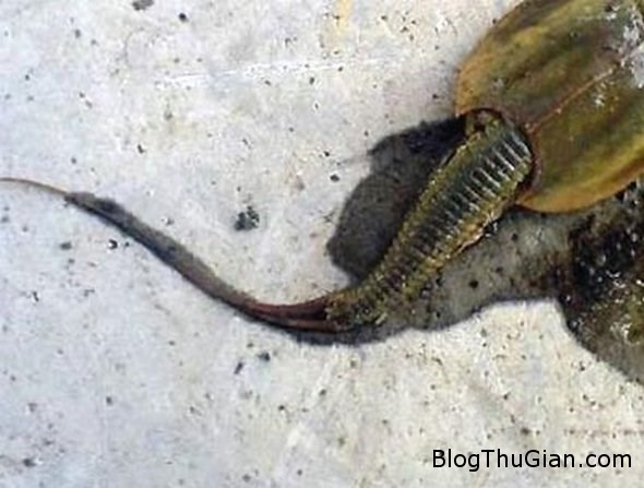 Khi thủy quái đó lật người trở lại, dễ thấy dưới lớp vỏ có rất nhiều chân không ngừng cựa quậy.